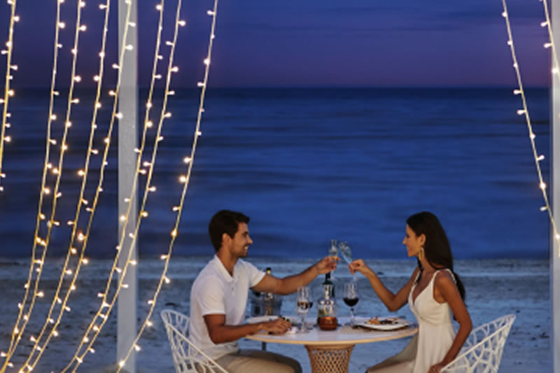 • ¿Cena Romántica? en un escenario perfecto para crear recuerdos y vivir el momento de plena felicidad, decoración con un estilo chic, centro de mesa de flores frescas, cena con menú de 4 pasos y botella de vino a elección.